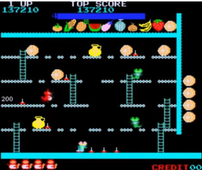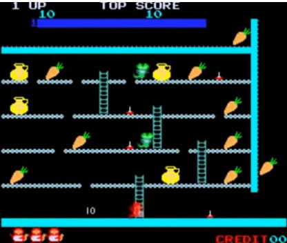 또한 윗 층으로 올라가기 위해서 사다리를 무조건 이용해야 하는데 좌우로 이동하는 적들이 엄청난 속도를 보이고 있어 조금이라도 조작 감이 느리면 그대로 잡아 먹힐 수 있습니다.