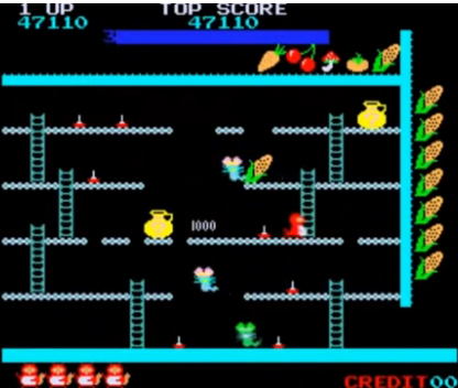 또한 윗 층으로 올라가기 위해서 사다리를 무조건 이용해야 하는데 좌우로 이동하는 적들이 엄청난 속도를 보이고 있어 조금이라도 조작 감이 느리면 그대로 잡아 먹힐 수 있습니다.