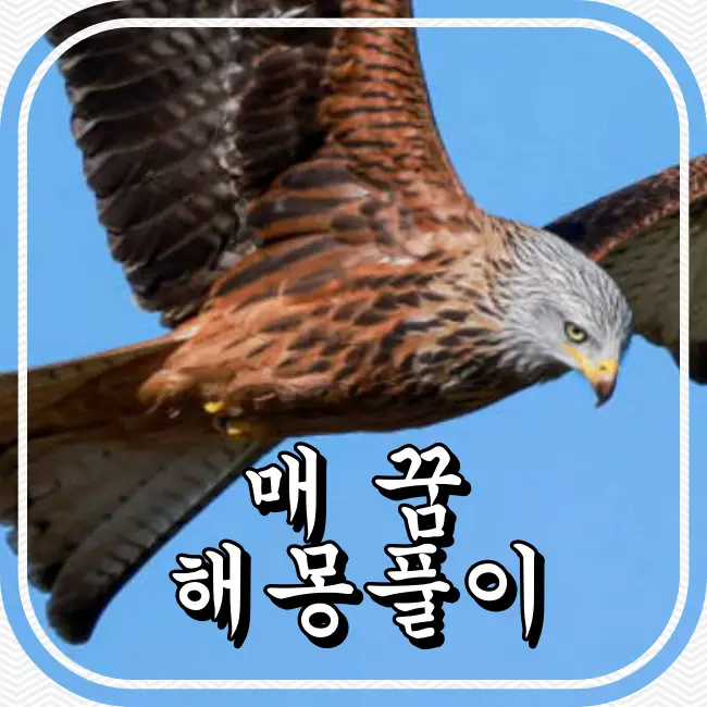 매(독수리)가 나오는 꿈은 당신의 운이 상승하고 있음을 알려주는데 매는 상승 기류를 타고 하늘을 나는 것으로, 제한된 계절에만 보이며 길조가 좋은 동물로 알려져 있습니다.