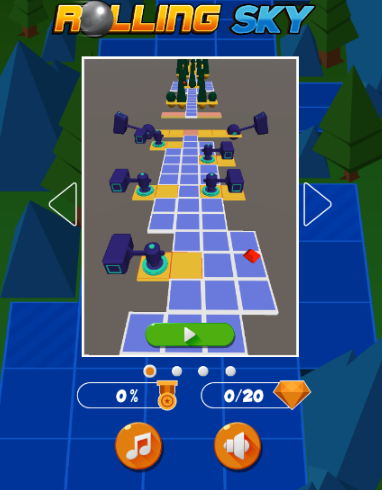 원형의 공을 이용하여 하늘 위에서 다양한 블록들을 통해 추락하지 않고 스테이지 끝 지점까지 도달해야 하는 미션을 가진 컨트롤이 요구되는 롤링스카이 게임으로 상당한 집중력이 요구되고 있는 작품이랍니다.