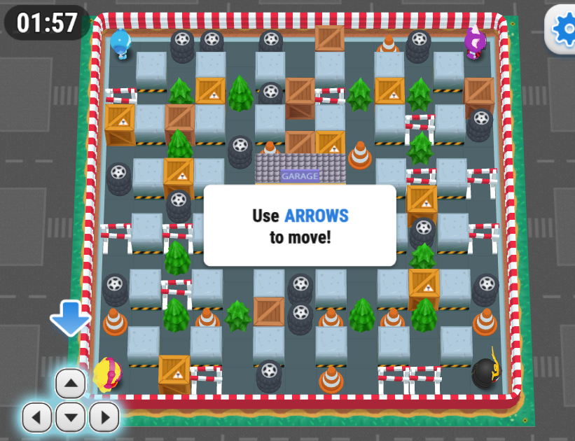 각 스테이지마다 정해진 시간 안에 상대방에게 폭탄을 설치하여 제거해 주는 형태로 혼자 살아남아야 하는 목표를 가지고 있습니다.
