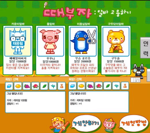 처음에는 여러분 혼자 모든 동물들을 도맡아 컨트롤하게 되지만 차후 돈을 벌어 아르바이트 생들을 고용하여 더욱 만족도 높은 서비스를 제공할 수 있게 됩니다.
