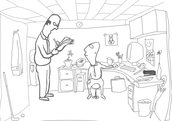 우선 플레이가 의자에 앉아 있는 주인공이 사장으로부터 열심히 구박을 받고 있습니다.