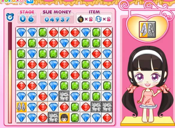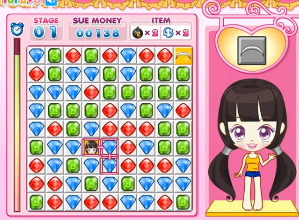 미션을 시작하면 주인공의 얼굴이 보석들 사이에 위치하게 되는데 아이템이 놓인 곳까지 정해진 시간 안에 이동시켜 클리어하고 다음 장소로 이동하면 됩니다.