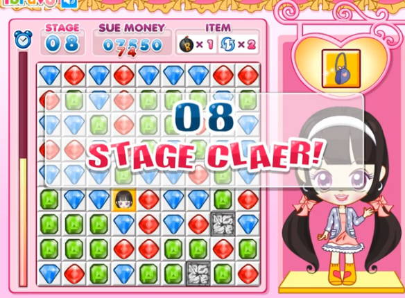미션을 시작하면 주인공의 얼굴이 보석들 사이에 위치하게 되는데 아이템이 놓인 곳까지 정해진 시간 안에 이동시켜 클리어하고 다음 장소로 이동하면 됩니다.