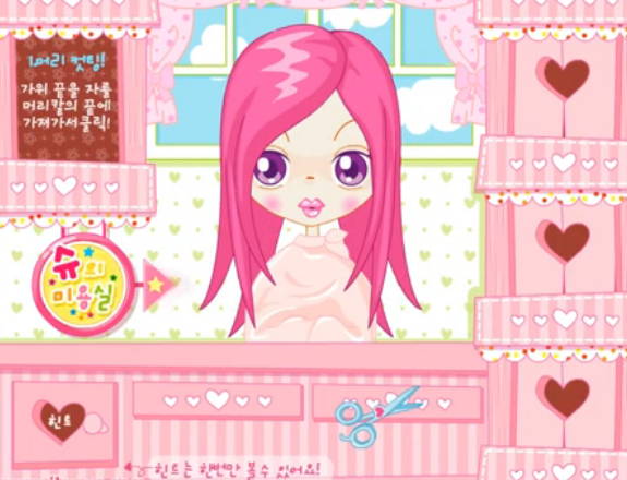스타일을 연출하기 위해서는 커팅하기, 염색약 바르기, 스타일링하기 등의 작업이 필요한데, 유저는 미용실 헤어샵 머리방 중 하나를 선택해서 게임을 즐길 수 있습니다.