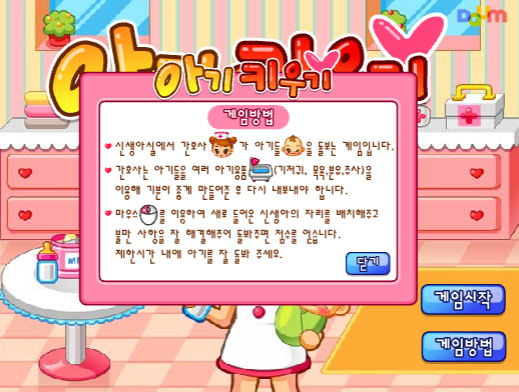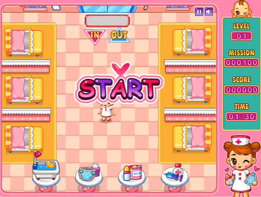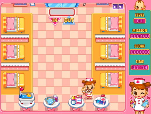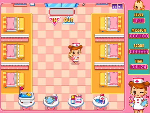 오늘은 신생아 실에서 간호사 캐릭터를 통해 아기들을 열심히 돌보는 미션을 가지고 재밌께 플레이 되는 아기키우기 게임입니다.