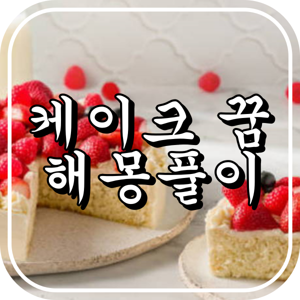 케이크의 꿈은 당신의 연애운이나 사람관계를 나타내며, 연애운의 상승을 알리는 경우가 많으며, 실연이나 파국을 체험했을 때는 맛없는 케이크의 꿈을 꾸게 됩니다.