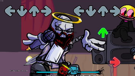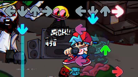 매우 흉측하게 생긴 캐릭터와 빠르게 음악배틀을 벌이는 모드이며 여러분이 상대를 할 캐릭터의 경우에는 거대한 검을 들고 있고 또한 권총으로 위협을 하면서 랩 공격을 가하고 있습니다. 처음에는 단순한 곡이 등장을 하지만 스테이지가 넘어갈 수록 나오는 곡은 더 끔찍할 거라는 말을 건네며 보프를 긴장 시키고 있네요.