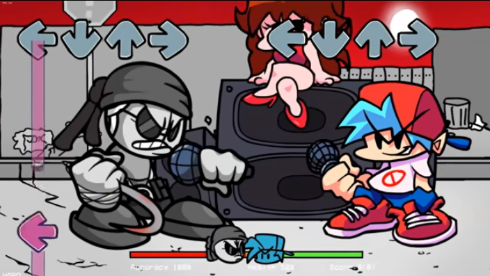 원래 대전하는 캐릭터는 잔인하게 생겼지만 이번 프나펌 샌포드 모드에서는 정말 귀여운 그래픽으로 만들어졌습니다. 대결하는 배경은 한적하고 약간 불결한 어떤 골몰내부에서 보프와 그리고 해당 빌런 캐릭터가 랩배틀을 하게 됩니다.