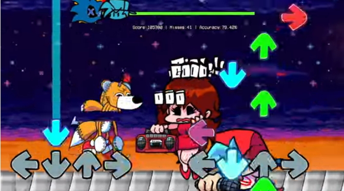 1980년대 콘솔게임에서 해성같이 등장해서 큰 사랑을 받았던 캐릭터들이 등장하여 박진감 넘치는 리듬배틀을 벌이는 프나펌 소닉 & 테일즈 모드를 위에서 직접 플레이를 할 수 있습니다. 여러분들은 남자친구인 보프를 컨트롤을 하면서 메인빌런들과 쉴 새 없이 키보드를 입력을 해서 랩배틀에서 최종 우승자가 되면 되겠습니다..