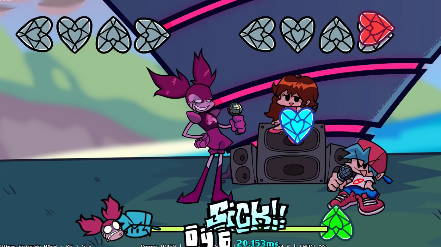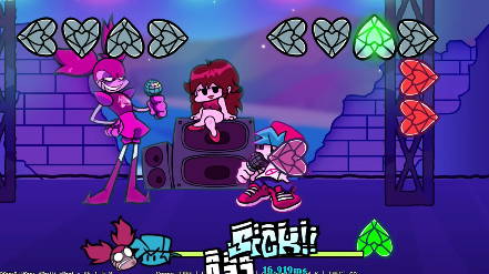 시원한 선상에서 괴기스러운 캐릭터와 즐거운 리듬배틀을 벌이는 프나펌 스피넬 모드입니다. 여자 친구는 모든 것을 보프에게 맡기자고 말을 했지만 이를 무시하고 자신이 훌륭한 노래 실력을 통해 충분히 이길 수 있다 생각되어 이렇게 대전을 시작하고 있어요.