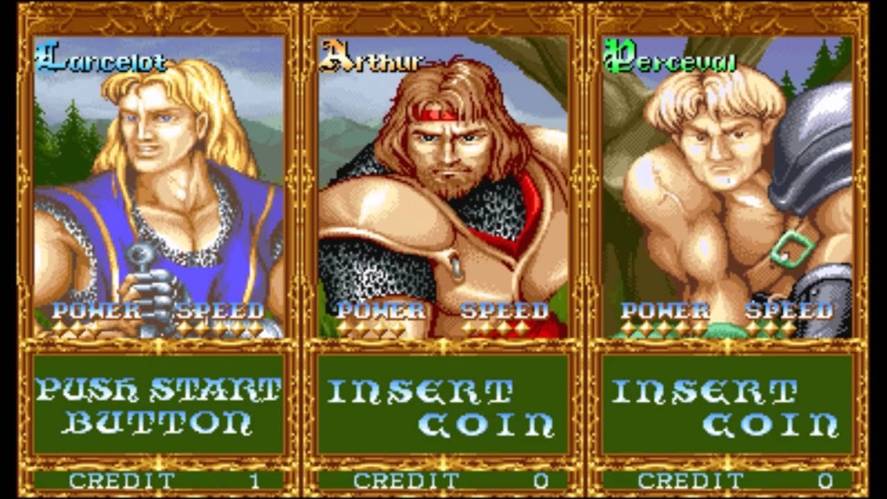 1990년대 초반에 출시한 아케이드 액션장르의 원탁의 기사라고 불리던 나이츠 오브 더 라운드 추억의 오락실게임을 위에서 직접 플레이를 진행을 해보세요.